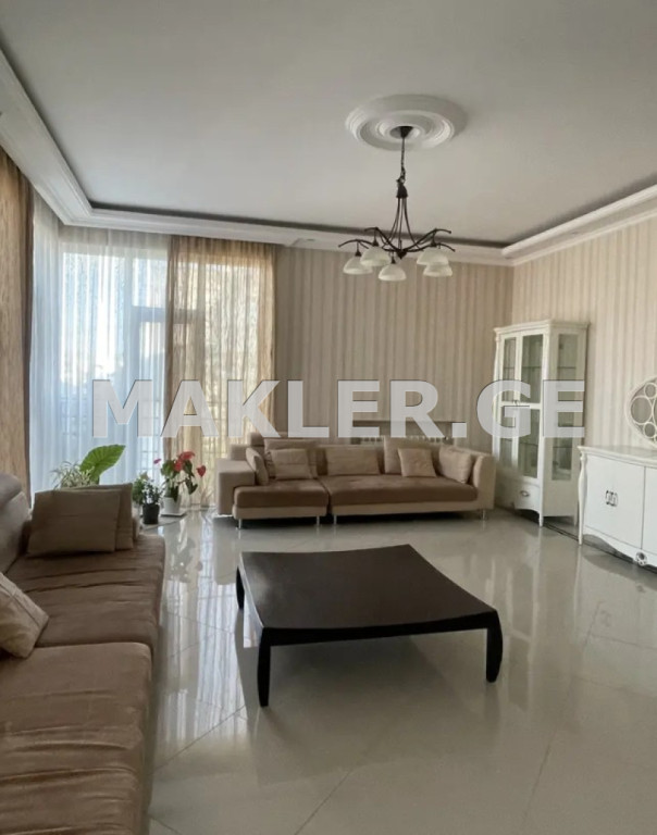 For sale 3-room, 117 sq.m., non-standard apartment in Vake. 9/11 floor. - High ceiling (3.20 m) - 2 bright bedrooms - Separate kitchen - Large living room - 2 bathrooms - Balcony, which is connected to the living room and kitchen (with a view of Tbilisi). The apartment is fully equipped with furniture and appliances: refrigerator, gas stove, electric stove, washing machine and dishwasher, 2 air conditioners, 2 TVs. If desired, it is possible to purchase an underground individual parking space (on the ground floor), from which you can go directly to the apartment by elevator. The building has a secure, fenced yard, a closed, well-maintained entrance and a new elevator.