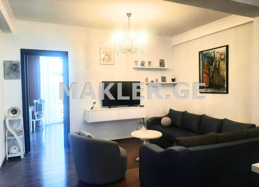 For rent: renovated, bright 3-room apartment with 2 independent bedrooms, studio-type living room and 2 balconies, overlooking both Tabidze and Tskhedadze streets. The apartment has its own parking space, which can be rented for an additional $100.