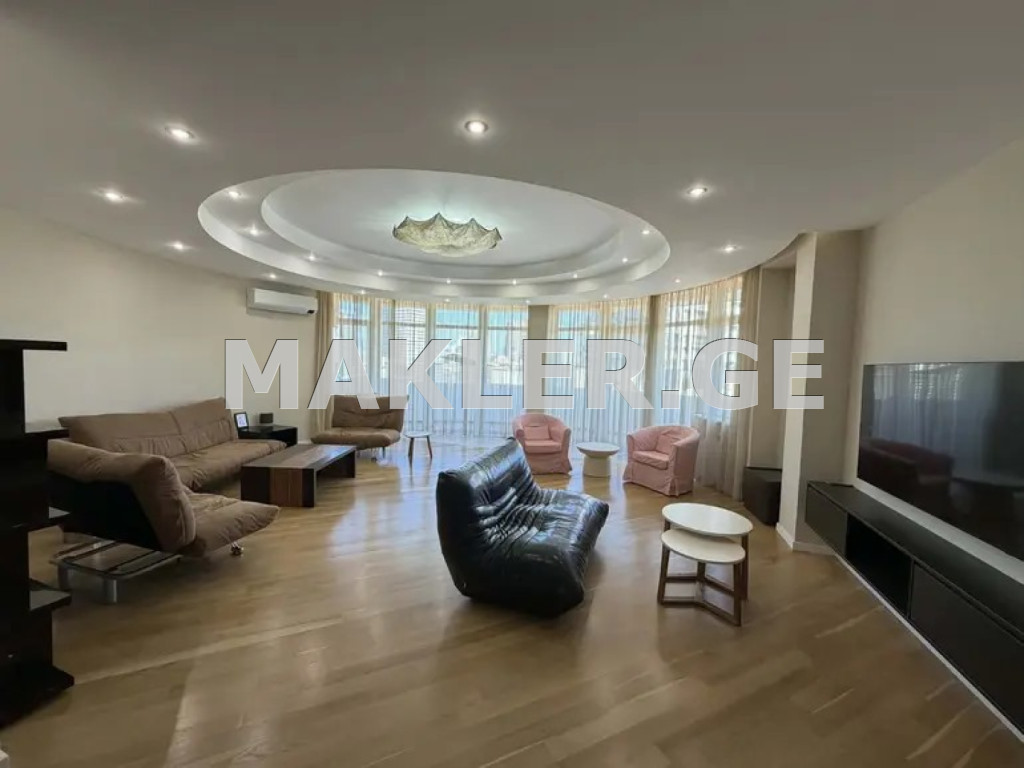 A newly renovated 4-room bright apartment is for rent in Vake, near Vake Park. The apartment has a 46 sq.m. bright living room, two, isolated kitchens with fireplaces of up to 40 sq.m., 2 bedrooms, a private bathroom and a dressing room, a laundry room with a balcony, an additional guest bathroom and 2 balconies, from which a view opens towards the Turtle Lake mountain. The apartment is rented unfurnished, it is also possible to rent it furnished by agreement. It has its own parking for 2 cars.