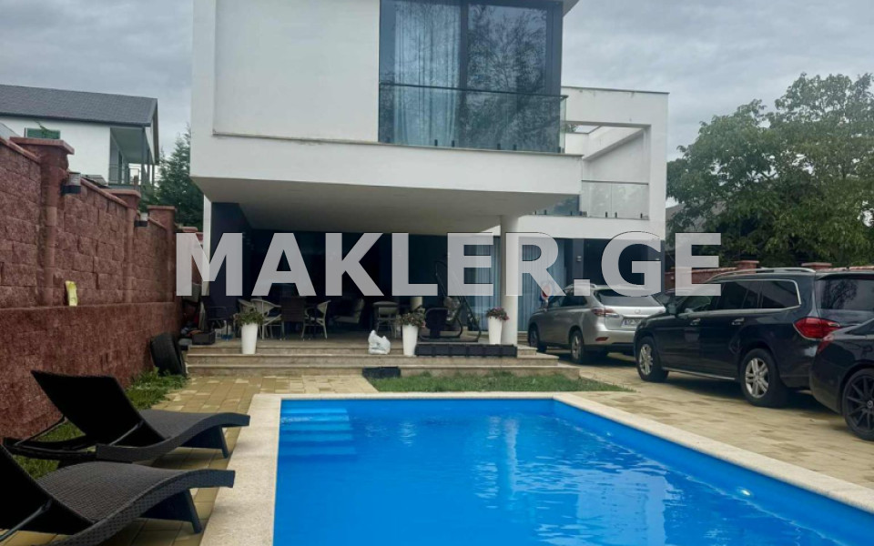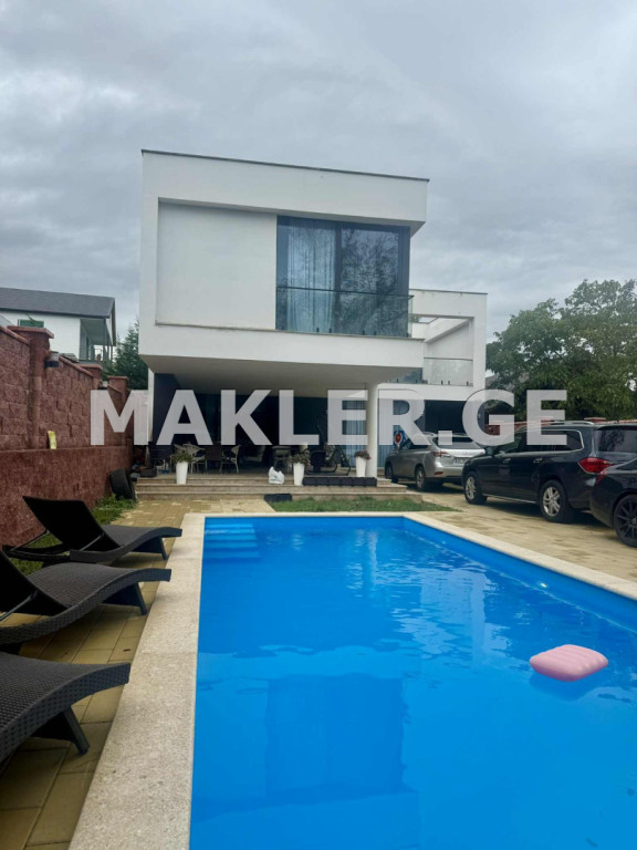 For rent. Newly built, renovated, with furniture and appliances. 3 master bedrooms. 2-storey house in Tabakhmela. 6 parking spaces in the yard. Outdoor pool