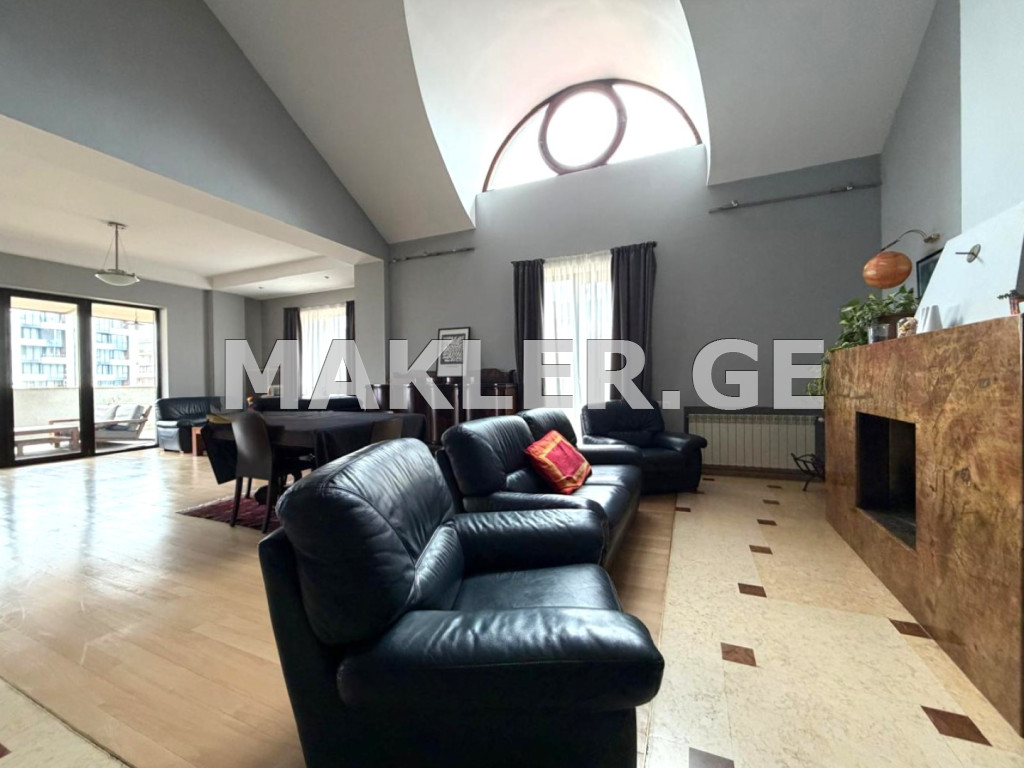 A spacious and bright 5-room apartment with a separate living room and a separate kitchen is for rent. The apartment includes 3 bedrooms, 2 of which have their own bathrooms, as well as an additional study room. The living space is fully equipped with the necessary furniture and appliances. It has a large veranda with a barbecue area, which creates a comfortable environment for relaxation.