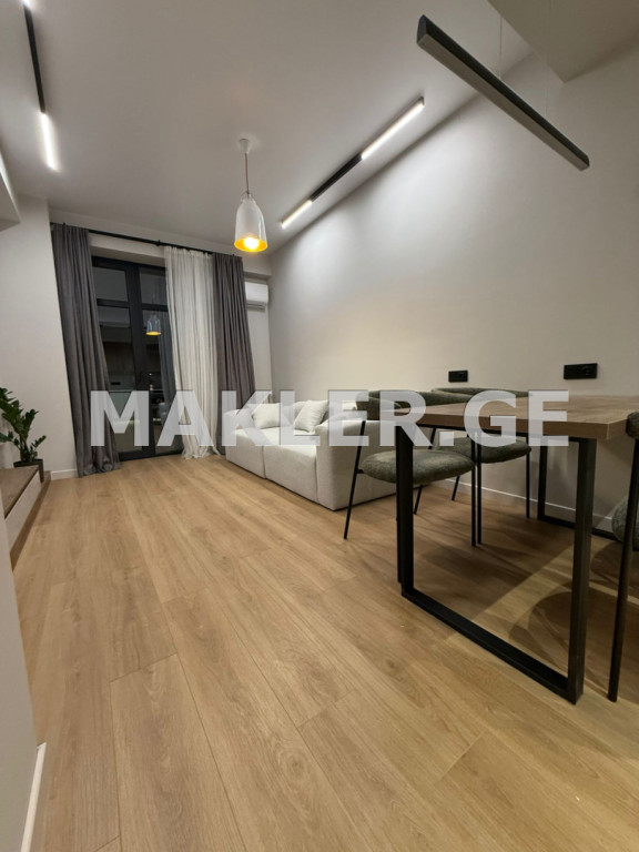 A bright and warm apartment is for sale in Block A of the Arkis complex. The apartment is equipped with all necessary appliances and furniture.