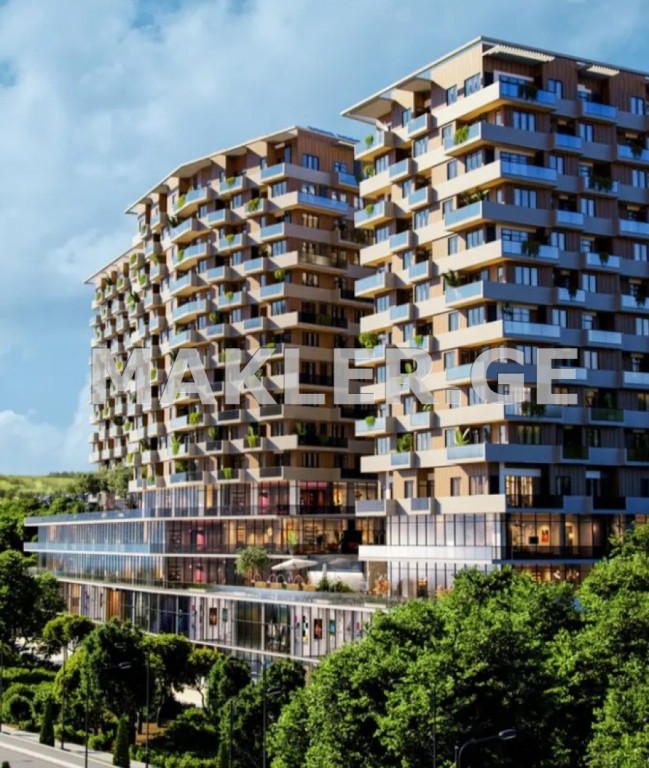 Residential (2-room) apartment area 57m2, in Tbilisi, on Amashukeli Street in the “Lisi Trio” business class complex, block A, floor 7, with a view of the recreation area. The complex is being built with the co-financing of the Bank of Georgia, the space will be delivered with a white frame, renovation works can begin in the spring of 2026, the building will be delivered in the spring of 2027. The building has a secured area, underground parking, office space, swimming pool, spa, tennis courts, GYM.