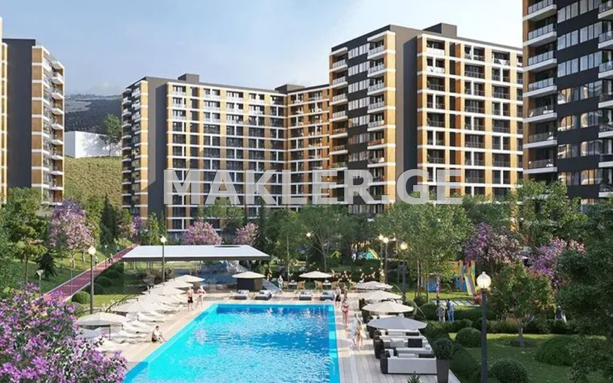 A 3-room apartment is for sale in a newly built and completed complex on Kalandadze Street. The floor in the apartment is tiled and the balcony is tiled.