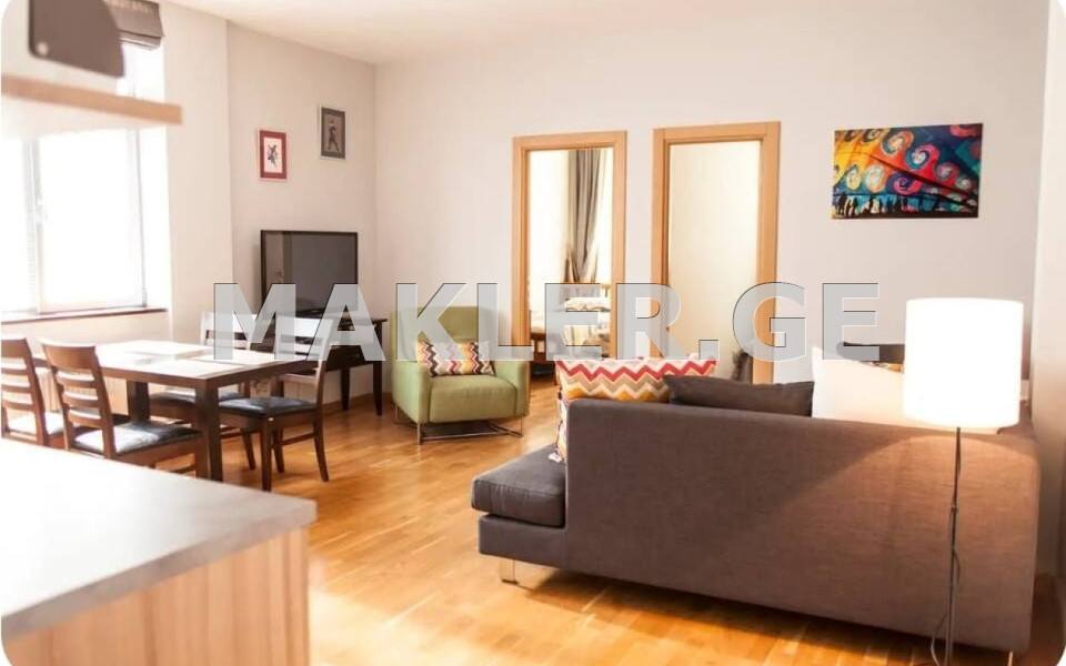 The apartment is located in the central part of Tbilisi, on Rustaveli, in the Beki Business Center. It is renovated, comfortable. It is successfully rented.