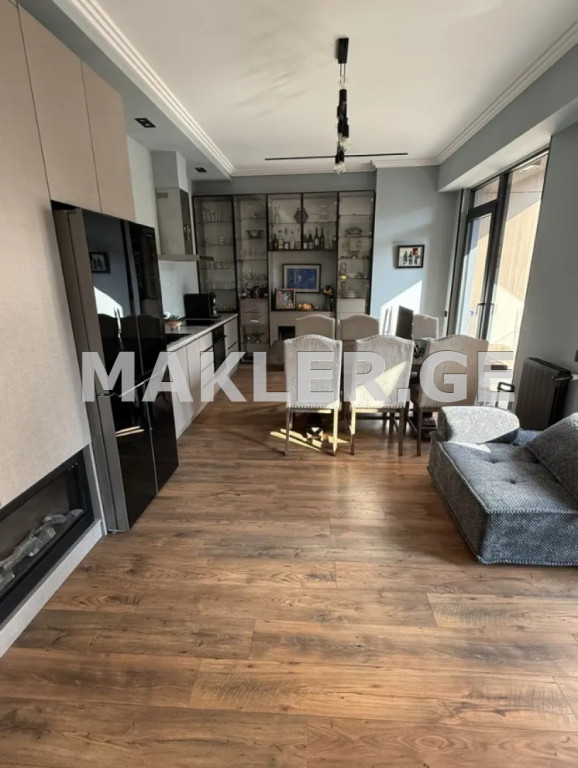 Apartment for sale in a newly built building on Ilia Chavchavadze Avenue, in the Orioni building. The apartment is renovated, sold with built-in furniture and appliances. The total area is 126 sq m, it has two bathrooms and two bedrooms.