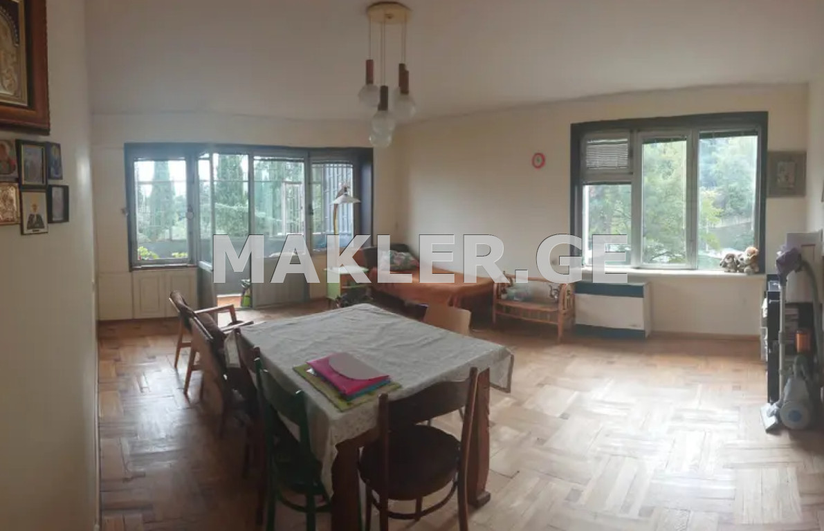 3-room apartment for sale in Vera, on Rcheulishvili Street. A solid and reliable apartment of a Czech project is located on the 5th floor. Total area: 95 sq.m. The apartment has an ideal layout: a living room, a separate kitchen and 2 bright bedrooms. 2 balconies are on the southeast side, from which a beautiful panoramic view of Mtatsminda and the entire city opens. The apartment comes with a capital garage, which is a special priority in this area. The house is distinguished by peace and fresh air.