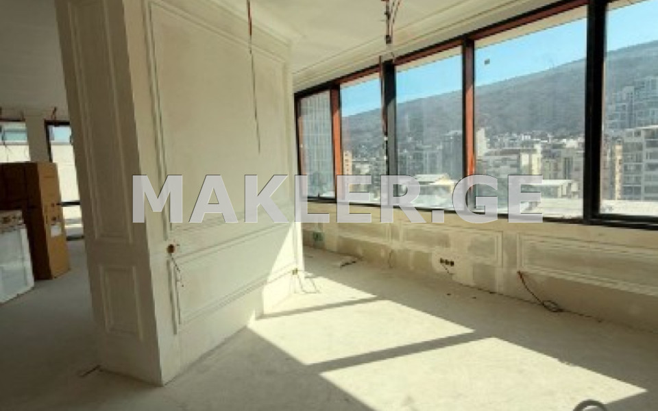 Apartment for sale in the premier complex of Axis Towers. The only apartment with its own terrace and overlooking Chavchavadze Avenue. The apartment is finished to the finishing touches. Equipped with a fully equipped smart home system (KNX) which includes: heating, ventilation, lighting, ceiling sound system, curtains, sensors and cameras. The apartment also comes with a parking space on the 3rd floor. It has 2 bedrooms, although the space allows for the arrangement of 3 bedrooms.
