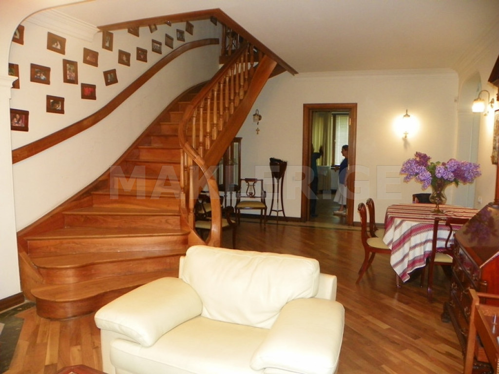 For sale! 277 sq.m. 8-roomed apartment with the best location. The apartment is duplex type. It is possible to isolate the upper floor. On the first floor is located two bedrooms, living room with fireplace, isolated kitchen and toilet. The second floor consists of 4 bedrooms, living room and toilet. The apartment has two balconies and beautiful views from all sides! The house is included in the top five of Tbilisi's most solid houses.It is ideal for living as well as for the hotel!