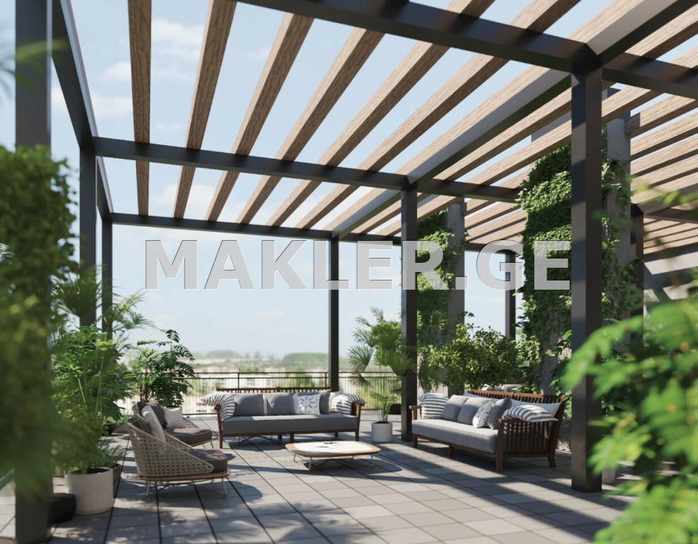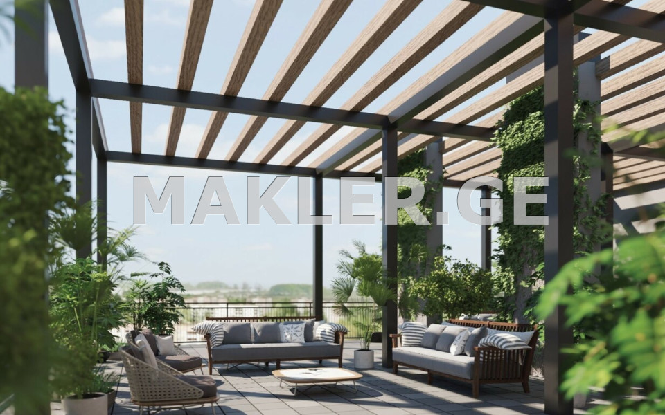 A 4-room apartment is for sale on Shartava, in the Tetri Kvadrati residential complex. The house will be equipped with a generator that will provide fire safety systems, drinking water pumps, elevators, parking, corridors, public spaces and internal courtyard evacuation and emergency lighting. There are both open, shared, and closed parking lots under the house. The external and internal walls of the houses are built with blocks, which have thermal insulation properties. A wall built with this material maintains the room temperature for a longer time and provides sound insulation. The aluminum double-glazed windows and doors installed in the houses are also energy-efficient.