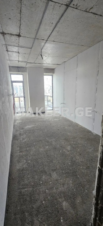 The apartment has already been handed over and it is possible to start renovation. Electricity and central heating pipes have been installed in it, the walls are plastered, and a stretch floor (so-called "styashka") has been laid on the floor. The project is located in Tbilisi, at 12 Politkovskaya (formerly Jikia) Street (White Square on Jikia). Project advantages and infrastructure: Commercial and parking zone: The first floor is reserved for commercial spaces. The building has both an underground and a 50-space outdoor parking lot. Energy efficiency: Energy-efficient materials were used during construction. The external walls are built with thermal insulation blocks, and aluminum double-glazed windows and doors are installed. Safety and adaptation: The building is fully adapted and equipped with modern fire systems.