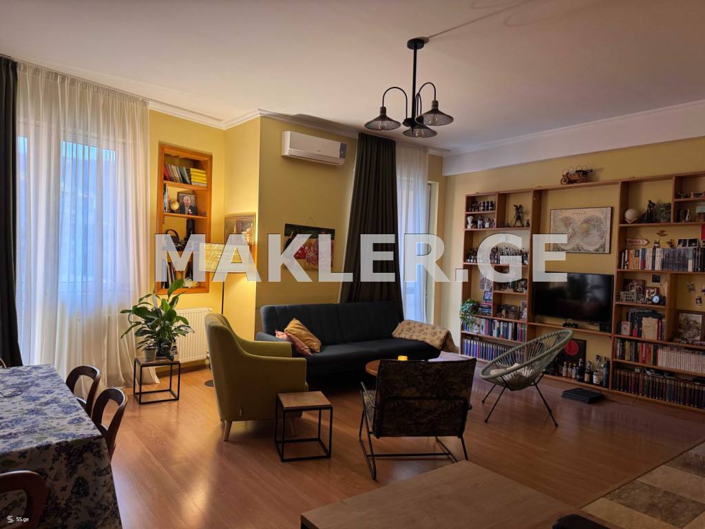 A bright, cozy and spacious, studio-type two-room apartment is for sale in Shanghai on the 6th floor of a newly built building. The total area of the apartment is 80 sq.m. It includes one bedroom and a spacious living room, as well as a built-in kitchen and a cozy dining area. The apartment has three balconies, one on the bedroom side and two on the living room side. Modern interior, good lighting and comfortable layout create ideal living conditions for any person. In the surrounding area there is a curation, a pharmacy, a school, a market, a square and a football field. The apartment is a 15-minute walk from City Mall and the Deli metro station. All appliances and some of the furniture remain.