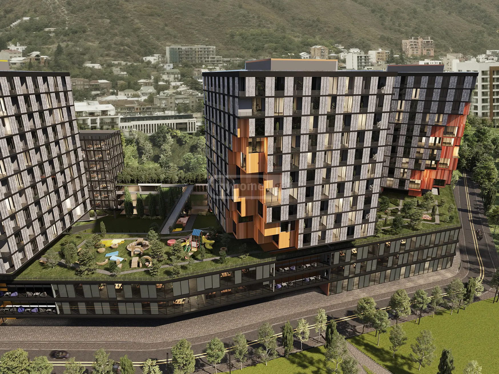 რეკრეაციული ზონა: კომპლექსს აქვს უპრეცედენტოდ დიდი გამწვანებული ეზო და დასასვენებელი სივრცეები.