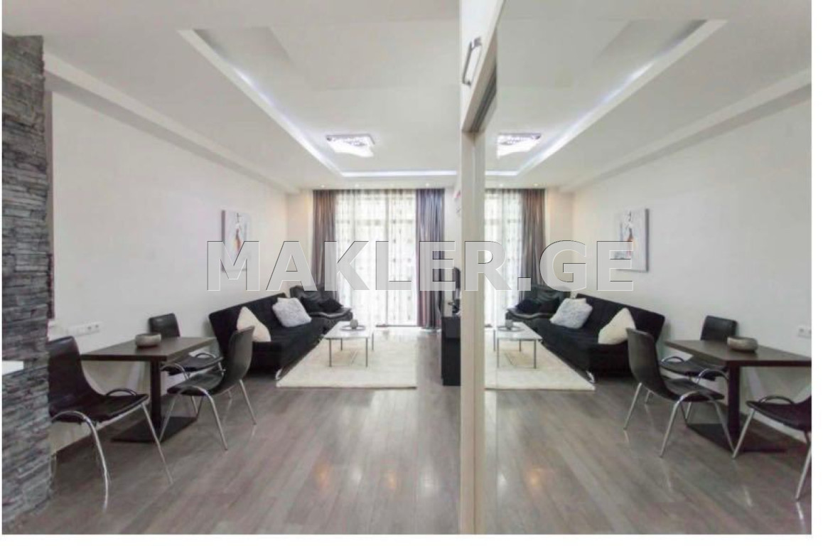 მისაღები-სამზარეულო სრულად აღჭურვილი: ჭურჭლის სარეცხი მანქანა, გაზქურა, მაცივარი და ა.შ