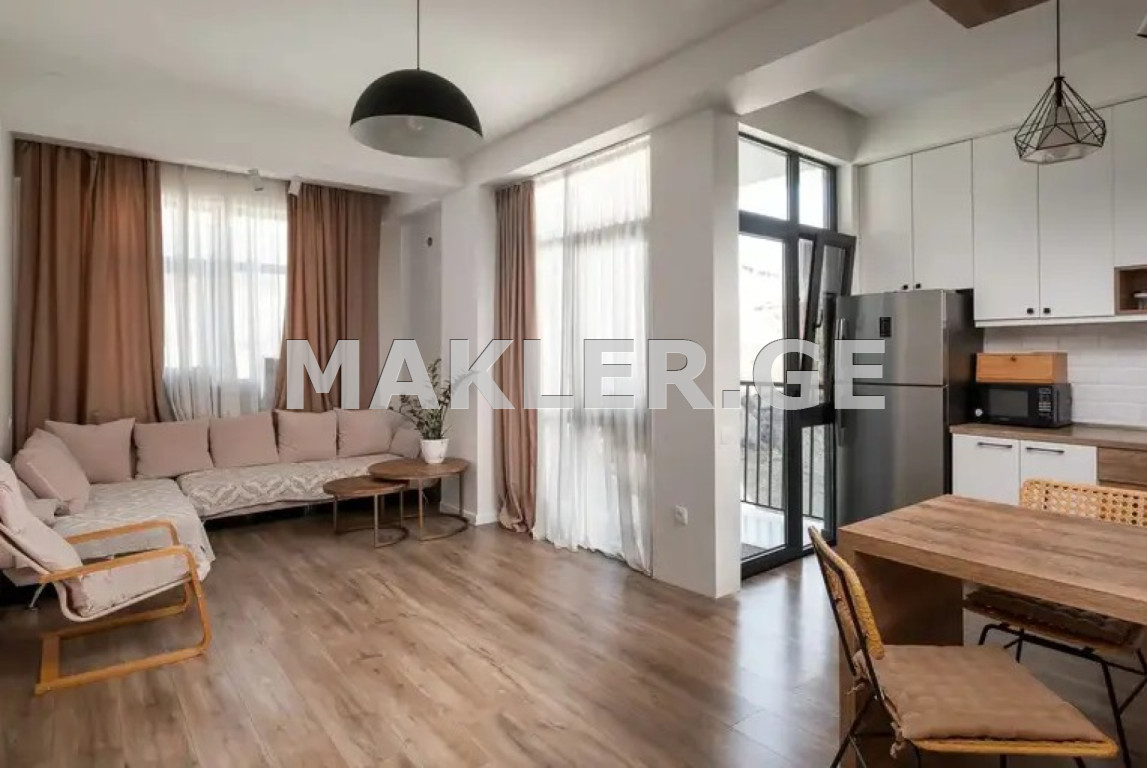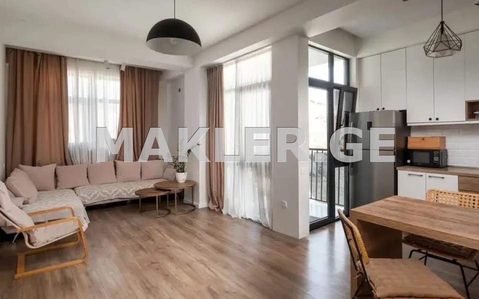 იყიდება კუთხის ბინა 85 კვადრატული, ორი საძინებლით, 1 სველი წერტილით, 1 სტუდიოს ტიპის მისაღებით, 1 დიდი აივნით(თბილისის ხედით) და 1 პატარა აივნით. კორპუსს ააქვს კერძო ეზო ფეხბურთის სტადიონით და საქანელებით, ასევე 2 ლიფტი და ემსახურება დაცვა/კონსიერჟი.