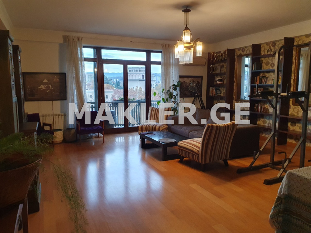 ცნობილ სახლში ოპერასთან, რომელიც აშენებული და მოპირკეთებულია მაღალი ხარისხის ეკოლოგიურად სუფთა მასალების გამოყენებით, იყიდება 4 ოთახიანი, გაჭოლი,კუთხის განლაგების მზიანი ბინა, ოთხივე მხარეს აივნითა და ფანტასტიური ხედებით მტკვარზე. ბინაში დაგებულია ბრაზილიური მუხის პარკეტი და აღჭურვილია ყოველნაირი საოჯახო და სამზარეულო ტექნიკით. ყველა ოთახშია Daikin-ის ფირმის კონდიციონირების ზამთარ-ზაფხულის ბლოკები. უსაფრთხოებასა და კომფორტს უზრუნველყოფს ვიდეოფონი და სიგნალიზაცია მოძრაობის დეტექტორებით. კორპუსში მოხვედრა კი, რომლის პერიმეტრზეც განლაგებულია ვიდეოკამერები და ემსახურება 24 საათიანი დაცვა, შესაძლებელია ინდივიდუალური ელექტრონული საშვებით.