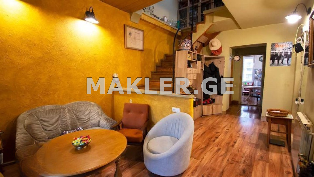 სამ სართულიანი 177 კვ.მ. ბინა ორიგინალური მხატვრული დიზაინით. ბინა არის გამჭოლი, აღმოსავლეთის და დასავლეთის განათებით. 6 ოთახი (4 საძინებელი, 1 სასადილო, 1 მისაღები), სამზარეულო, ორი სველი წერტილი, ორი აივანი, ვერანდა, ორი საგარდერობე და საკუჭნაო. ბინას აქვს თავისი სარდაფი. სახლს აქვს ლიფტი და ეზოში პარკინგი. ბინაში რჩება ჩაშენებული კარადები, ბიბლიოთეკის თაროები და სამზარეულოს ავეჯი.