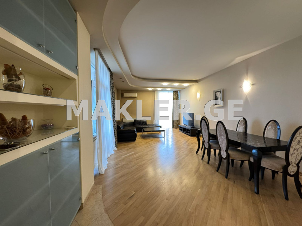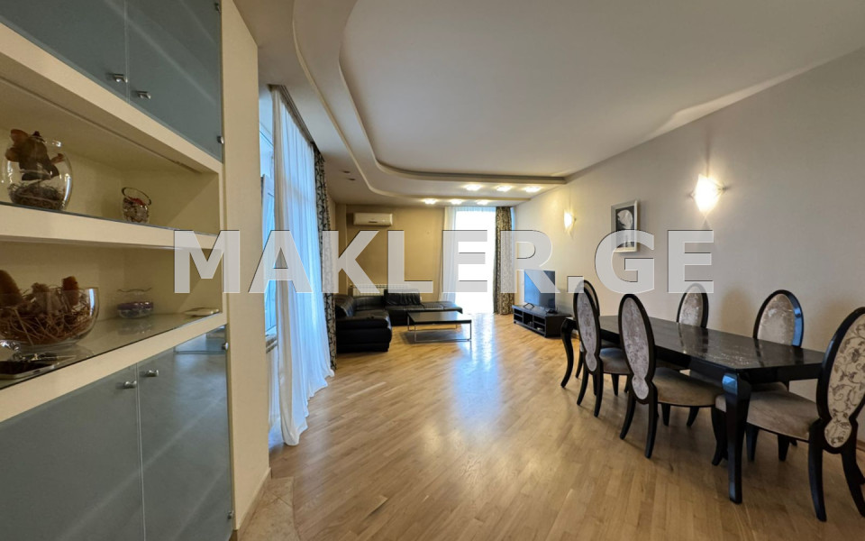 ქირავდება 5 ოთახიანი ბინა, 3 საძინებლით ერთი კაბინეტი, 2 სველი წერტილით, 4 აივნით, 1 სათავსოთი. ნათელი, მზიანი, კუთხის ბინა. მანქანის სადგომით.