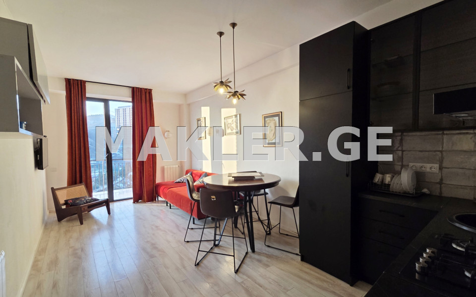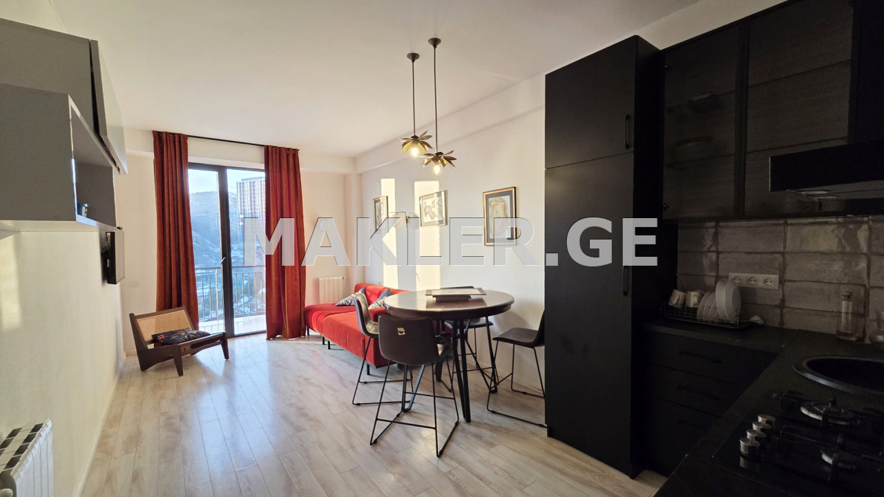 Квартира расположена в жилом комплексе GT Tauri на улице Жгенти. Отремонтирована, уютная. Имеет большую веранду, на которой можно обустроить оранжерею. Жилая площадь 53 квадратных метра, веранда 20 квадратных метров.