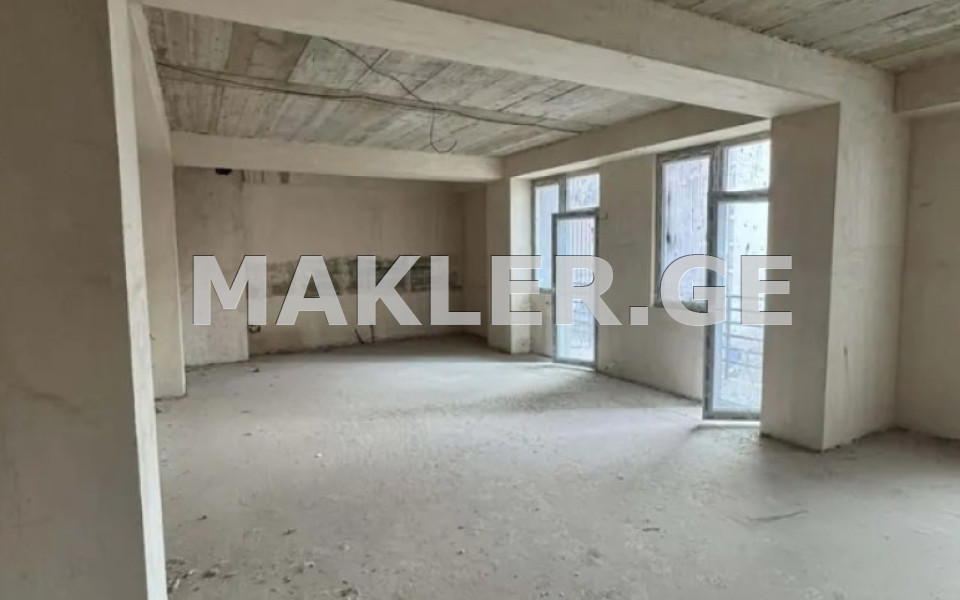 Квартира расположена на 7 этаже и находится в состоянии белого каркаса. В квартире 2 спальни, 2 ванные комнаты, большая гостиная, совмещенная с кухней (студия), и 2 балкона — один в спальне, другой в гостиной.