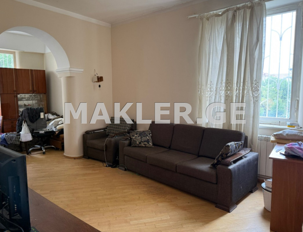 Продаётся светлая, солнечная 3-комнатная квартира угловой планировки, 2 балкона, большая лоджия (можно сделать третью спальню с окном). Квартира находится в 5 минутах ходьбы от станции метро «Делиси». Расположена на 3 этаже 4-этажного дома. Расположение между улицами Нуцубидзе и Закариадзе. Квартира старой сталинки с высокими потолками.