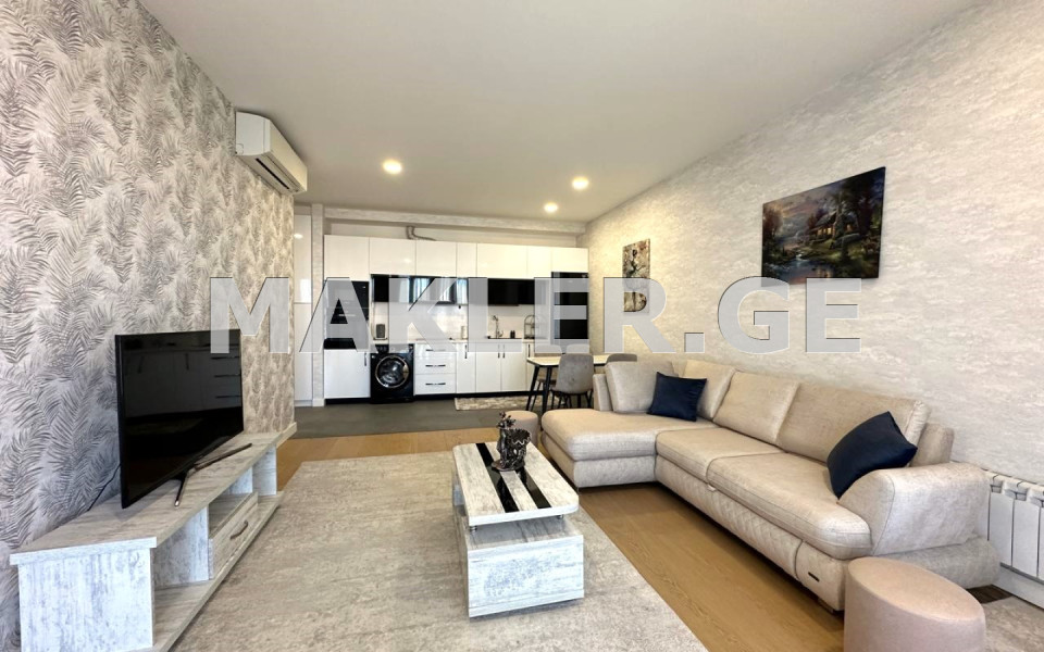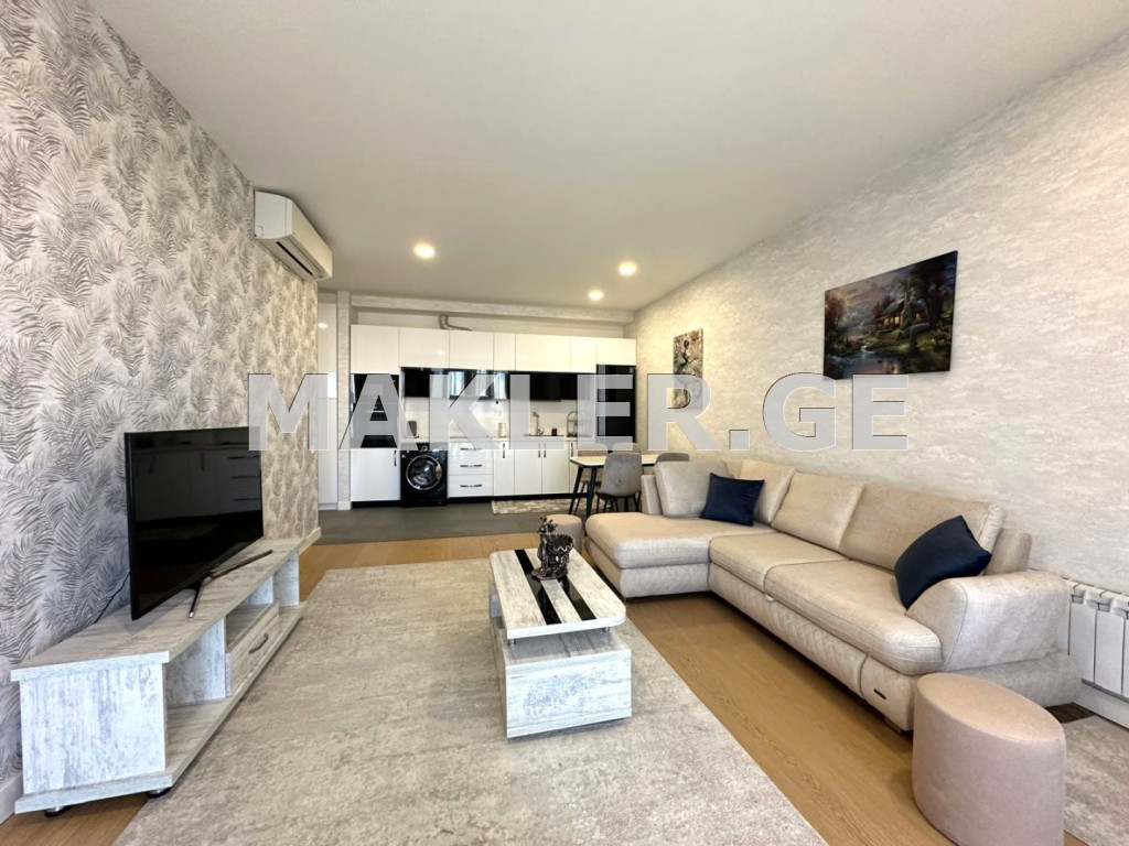 Сдается 2комнатная квартира площадью 81 кв.м в комплексе «Тбилиси Гарденс». Имеется большая веранда с прекрасным видом. Здание обслуживается консьержем, имеет зелёный двор, бассейн и тренажерный зал. Квартира оборудована необходимой мебелью и техникой.