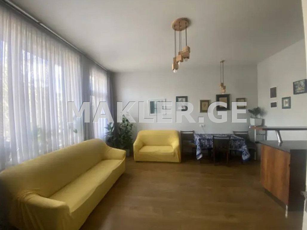 Продается квартира в районе Сабуртало, на проспекте Александра Казбеги, в 300 метрах от станции метро «Делиси», напротив комплекса «Центральный парк». Жилая площадь квартиры 68 кв.м., балкон 12 кв.м., капитальный ремонт на четвертом этаже трехэтажного здания. Квартира имеет балкон по всей длине, во всех комнатах окна и отдельный вход, гостиная студийного типа со встроенной кухней, спальни просторные, с собственными кладовыми. Ремонт был проведен в 2019 году, в ходе которого были установлены центральное отопление, новая проводка, электричество и коммуникации. Квартира угловая, с видом на двор. Двор зеленый, с детскими площадками, стадионом и площадью.