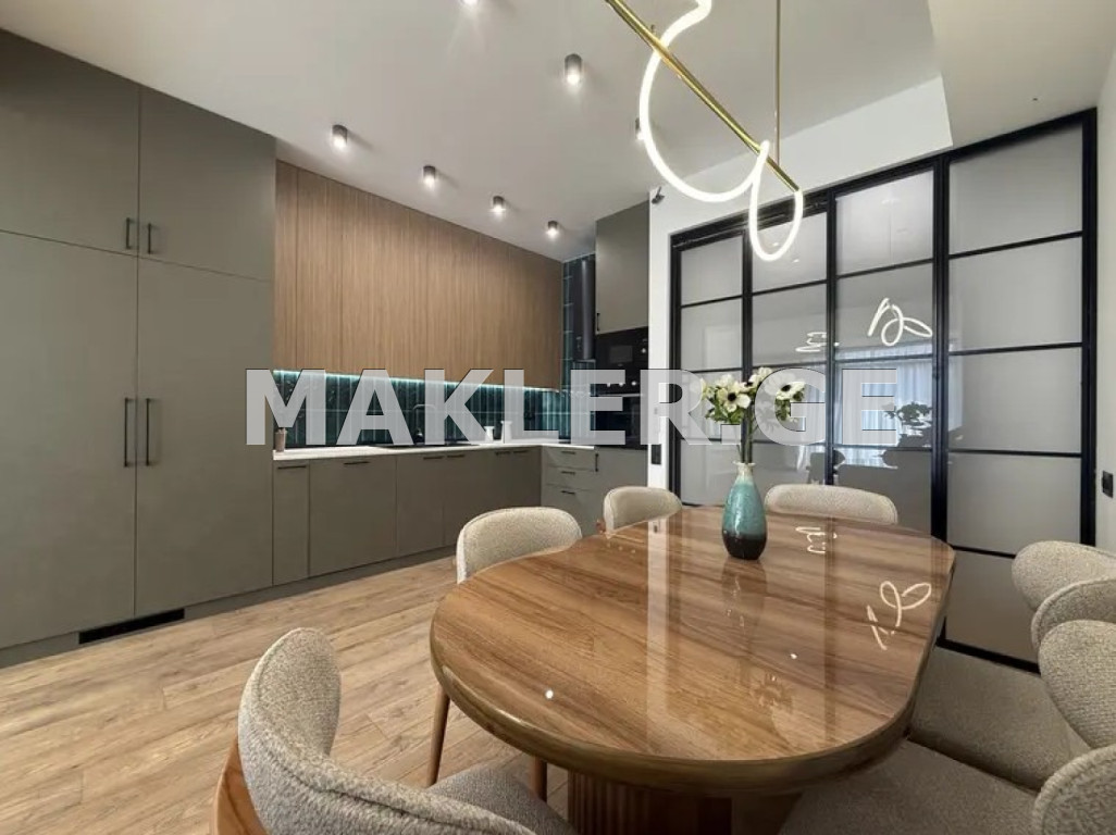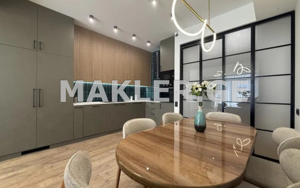Квартира расположена на Кавтарадзе, в жилом комплексе «Вел Хаус». Недавно отремонтированная, трёхкомнатная. Обставлена стильной мебелью и современной техникой.