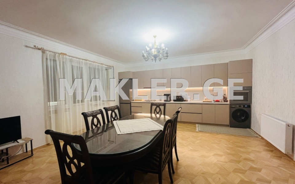 Продается квартира в Ваке на улице Размадзе, недалеко от посольства Греции. Квартира отремонтирована, 4 комнаты, 3 отдельные спальни, все спальни имеют балкон, мансарда и собственный дворик для парковки. Дворик оборудован для зарядки электромобилей.