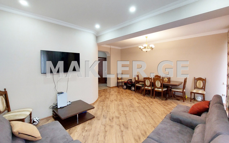 Продается в Сабуртало!!! А именно, на улице Анны Политковской, в жилом комплексе «Твой дом на Джикия», предлагается нестандартная, проходная, светлая, 4-комнатная квартира с ремонтом. В квартире 3 спальни. Зона ресепшена независимая и уютная. Кухня утеплена. В квартире 2 ванные комнаты, одна из которых так называемая «мастерская». Имеется 2 балкона. При ремонте использовались качественные материалы. Квартира продается с мебелью и техникой. Подъезд довольно аккуратный, закрывается, есть домофон. Расположен в инфраструктурно активном районе. Комплекс полностью оснащен всей районной инфраструктурой: футбольное поле, баскетбольная площадка, 7 скверов и 2 детские площадки, сетевые магазины и т. д. Рядом есть остановка транспорта, метро. За квартирой закреплено парковочное место в подземном паркинге, цена которого договорная.