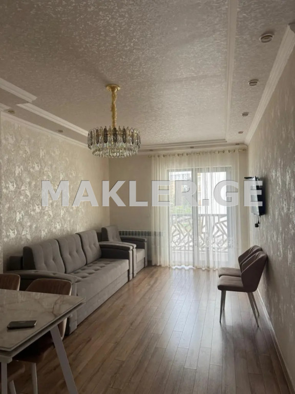 Сдается в аренду отремонтированная 3-комнатная квартира с гостиной студийного типа и 2 отдельными спальнями (на данном этапе вторая спальня используется как кабинет), полностью оборудованная бытовой техникой и мебелью, в строящемся престижном жилом комплексе «m³ Saburtalo».