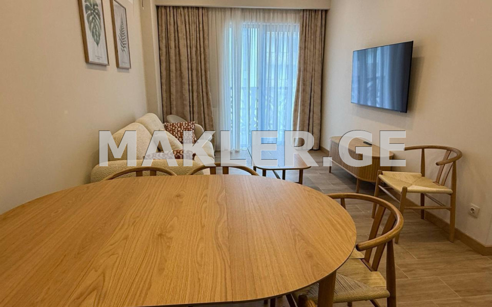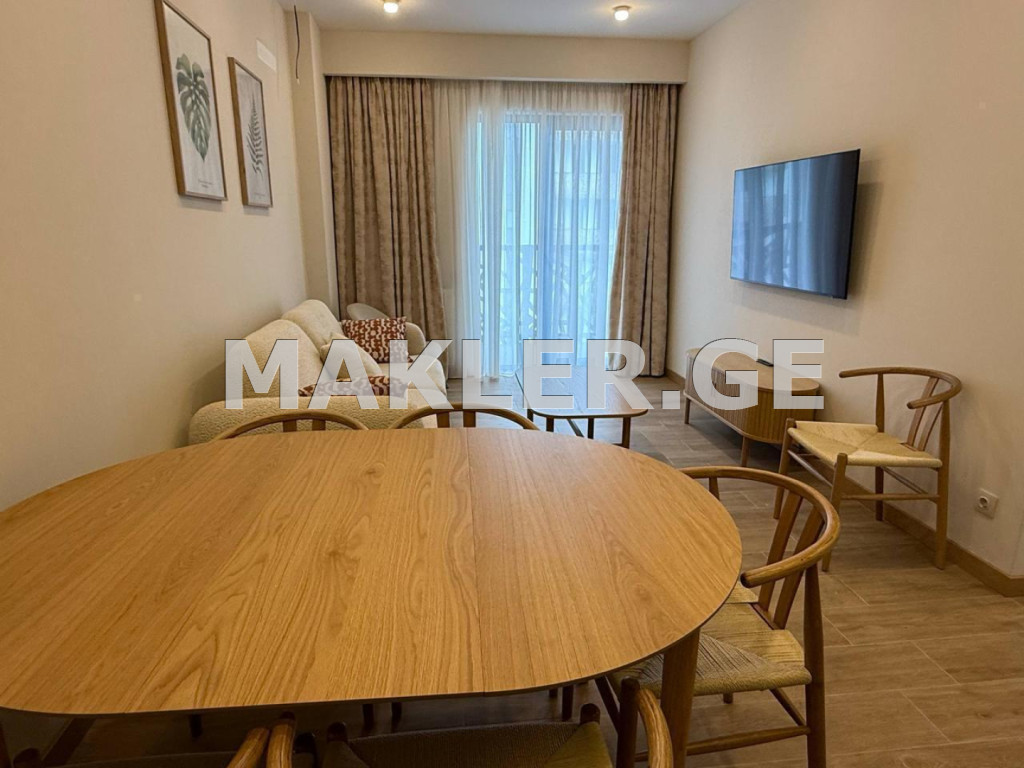 Сдается в аренду уютная 3-комнатная квартира с новым ремонтом, нежилая, с гостиной студийного типа и 2 отдельными спальнями, полностью меблированная мебелью и техникой, в строящемся престижном жилом комплексе «m³ Saburtalo», расположенном на проспекте Геловани.