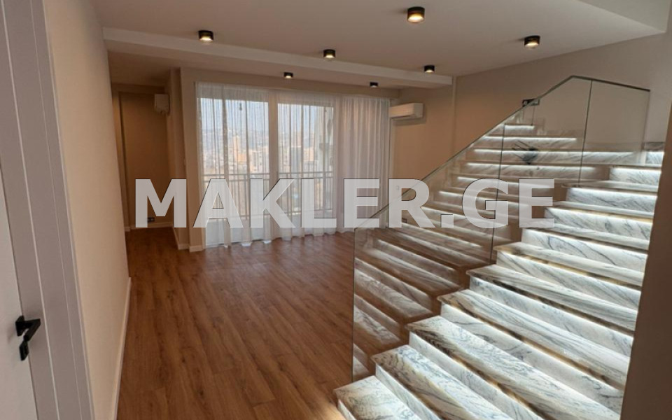 В Ваке, на проспекте Чавчавадзе, рядом с бассейном Ваке, сдаётся в аренду пентхаус с большой верандой и панорамным видом. Квартира нежилая, премиум-класса, с новым ремонтом и нежилая. Пентхаус частично оборудован мебелью и техникой, остальная часть может быть оборудована по желанию и потребностям арендатора. Площадь составляет 320 кв. м. (включая 110 кв. м. летнего пространства) и расположена на 2 этажах. В квартире 4 ванные комнаты - 1 общая и 3 в спальнях. Две спальни - так называемые главные спальни, в которых есть гардеробные и душевая. В квартире можно обустроить кабинет, а также, при желании, 4-ю спальню. В квартире будет вся необходимая бытовая техника, тёплые полы, кондиционер, котлы центрального отопления и бойлер.