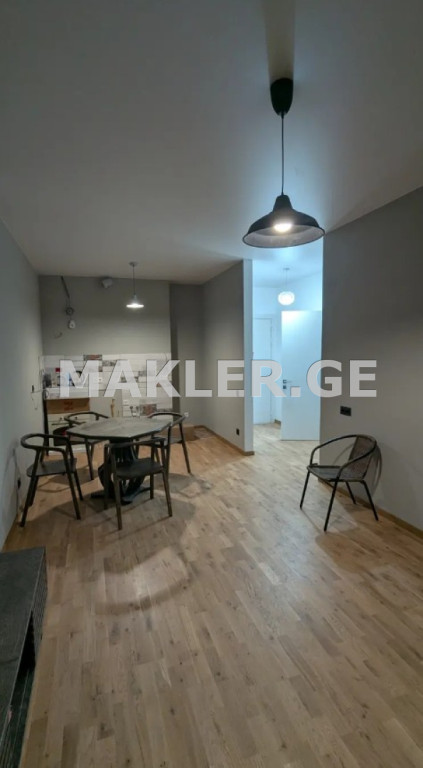 Saburtalo m²'' kompleksinde yeni yenilenmiş, 55 m²'lik boş bir daire satılıktır. Komplekse hem Gelovani hem de Bakradze caddelerinden erişim mevcuttur. Ahşap zemin İsveçli Kahrs firması tarafından döşenmiştir, yüksek kaliteli ''Creo'' Fransız banyo aksesuarları ve Ariston ısıtma sistemi de mevcuttur.