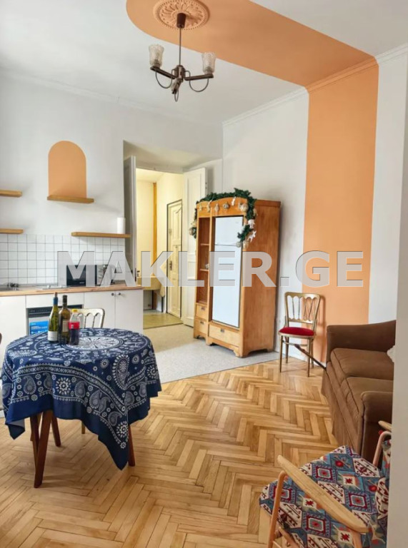 Tarihi bir binada, kültürel miras anıtı statüsünde bulunan, yüksek tavanlı, güneşli, 2 odalı bir daire satılıktır. Daireye hem avludan hem de giriş holünden erişim sağlanmaktadır. Daire, şehrin tarihi merkezinde, Orbeliani pazarına bitişik konumda olup, Özgürlük Metro İstasyonu ve Meydanı'na, Kuru Köprü'ye ve Aleksandrov Bahçesi'ne 5 dakikalık yürüme mesafesindedir. Daire, beyaz eşya ve mobilyalarla donatılmıştır.
