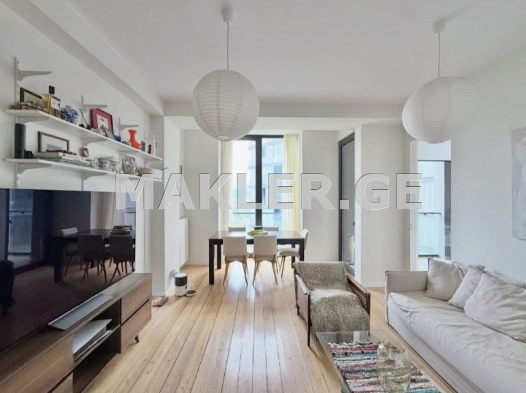 Park Home Vake kompleksinde satılık rahat ve aydınlık daire. Daire en yüksek kalitede yenilenmiş olup, ahşap zeminlere ve yüksek kaliteli ankastre cihazlara sahiptir. Plan: 2 yatak odası, geniş stüdyo tipi oturma odası ve mutfak, 1 banyo, 2 balkon. Daire, iç avluya ve şehre bakmaktadır.