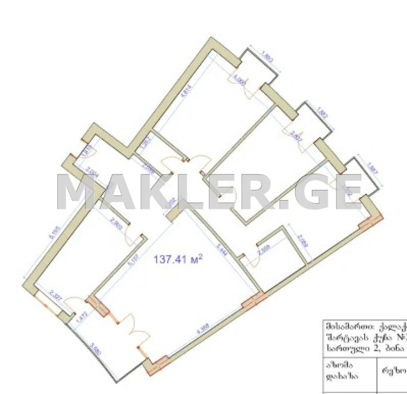 Daire, belediye binasının yakınında, Shartava'da yer almaktadır. 4 balkonu ve 3 banyosu vardır.